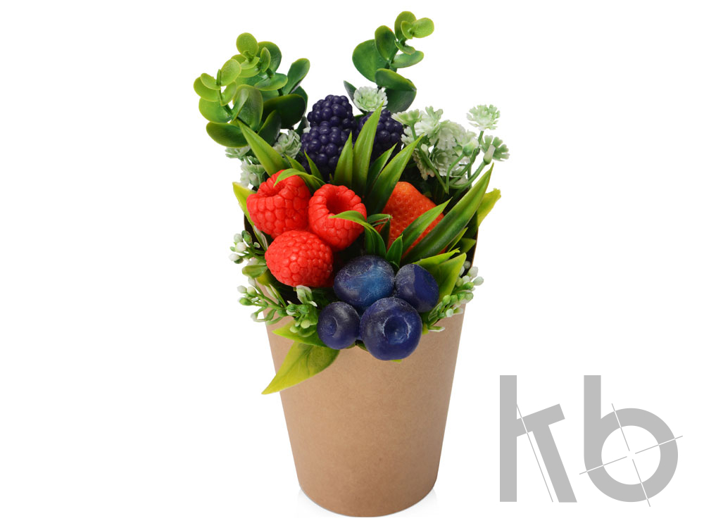 Набор наполнен запахом ягод, ими пахнут и мыло ручной работы, выполненное в виде букета, и чай, а свеча из вощины и крем-мед добавляют к этому аромату нотку медового уюта. Набор состоит из кружки, двух свечей из окрашенной вощины, кружки, крем-меда и пакетика чая, а упаковкой служит белая картонная коробка с наполнителем.