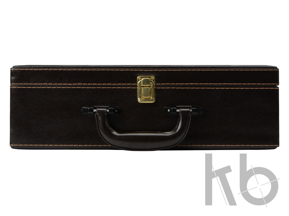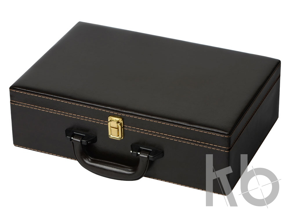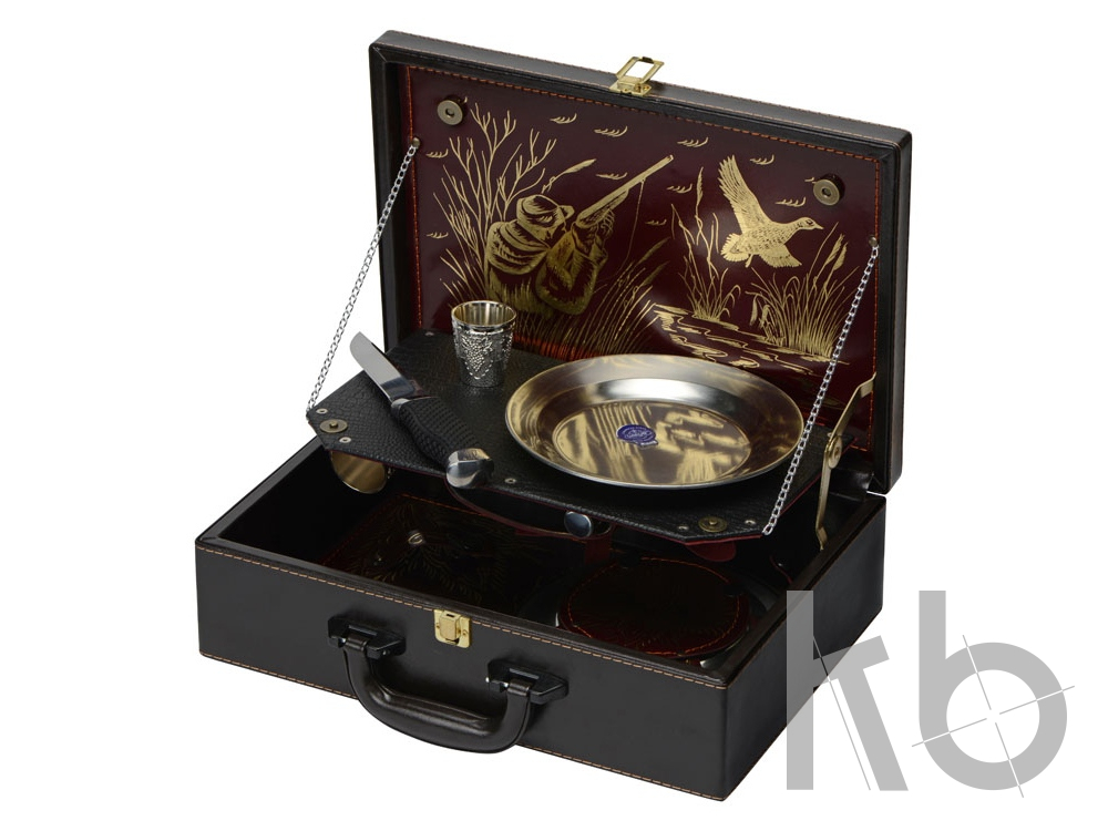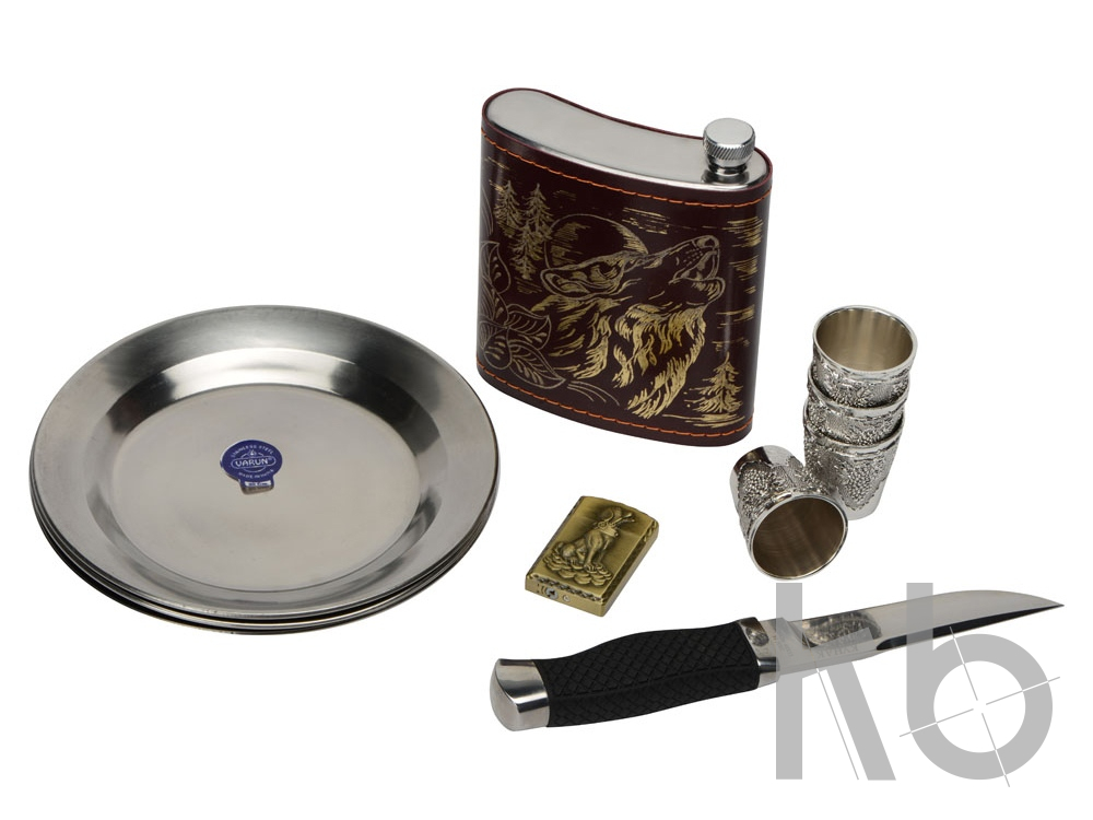 Кейс из сплит-кожи, с повышенной износостойкостью, внутренняя отделка натуральная кожа. В комплекте: Фляга 240 мл (нерж.сталь)– 1шт. Стопка 40 мл (нейзильбер)– 4 шт. Зажигалка зиппо– 1 шт. Нож "Универсал" (нерж. сталь) 45Х13– 1 шт. Тарелка из нейзильбера– 4 шт.
