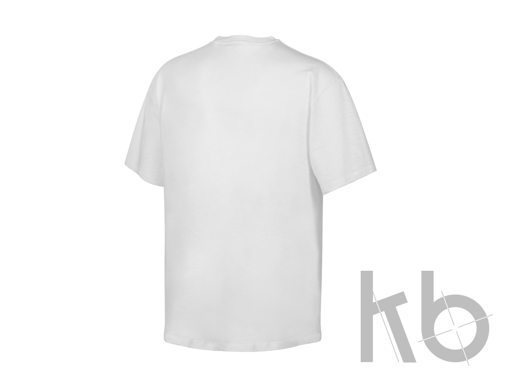 Полотно футболки имеет необычную структуру - с протяжками, но при этом гладкую поверхность, что обеспечивает идеальную поверхность для нанесения: прямая печать, трафаретная или термотрансфер прекрасно ложатся на такое полотно. Декоративная отстрочка по низу рукавов и изделия, а также отстрочка по горловине позволяют футболке дольше сохранять форму.
