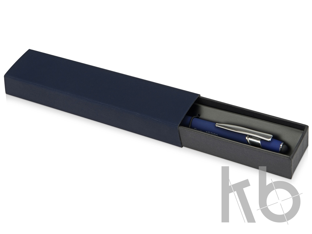 Футляр для ручки станет практичным дополнением бизнес-подарка. Основа изготовлена из плотного высококачественного картона, чехол каширован матовым материалом "софт-тач", имитирующим натуральную кожу. Пишущий инструмент закрепляется с помощью резинки на пластиковом ложементе.