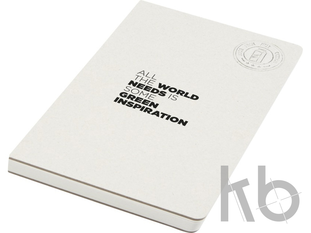Мягкий блокнот для заметок форматом A5 с 80 линованными листами плотностью 80 г/м² из переработанных картонных коробок из-под молока (до 70%). Картонные коробки из-под молока собираются, сортируются, перерабатываются и превращаются в бумагу, таким образом действительно превращая мусор во что-то полезное.