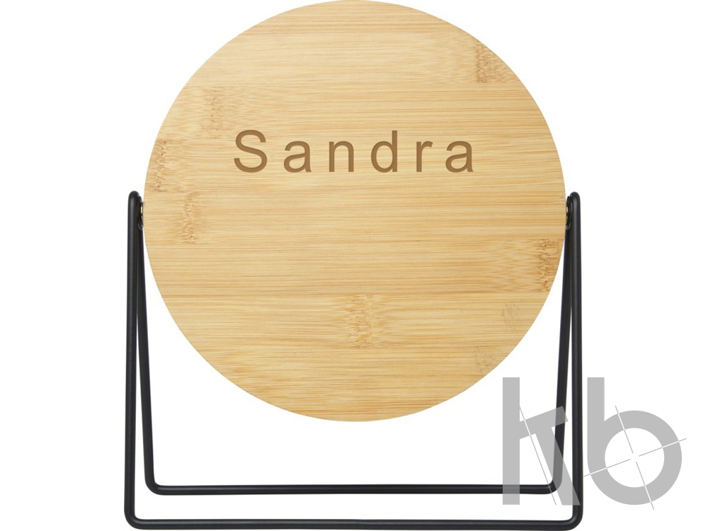 Двустороннее зеркало, вращающееся на 360 градусов, которое можно разместить на туалетном столике или другой горизонтальной поверхности. Зеркало выполнено из бамбука, который добывается и производится в соответствии с требованиями стандартов устойчивого развития.