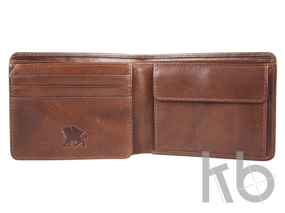 Бумажник изготовлен вручную из натуральной воловьей кожи, обеспечивает удобное и функциональное хранение купюр, кредитных карт и монет.