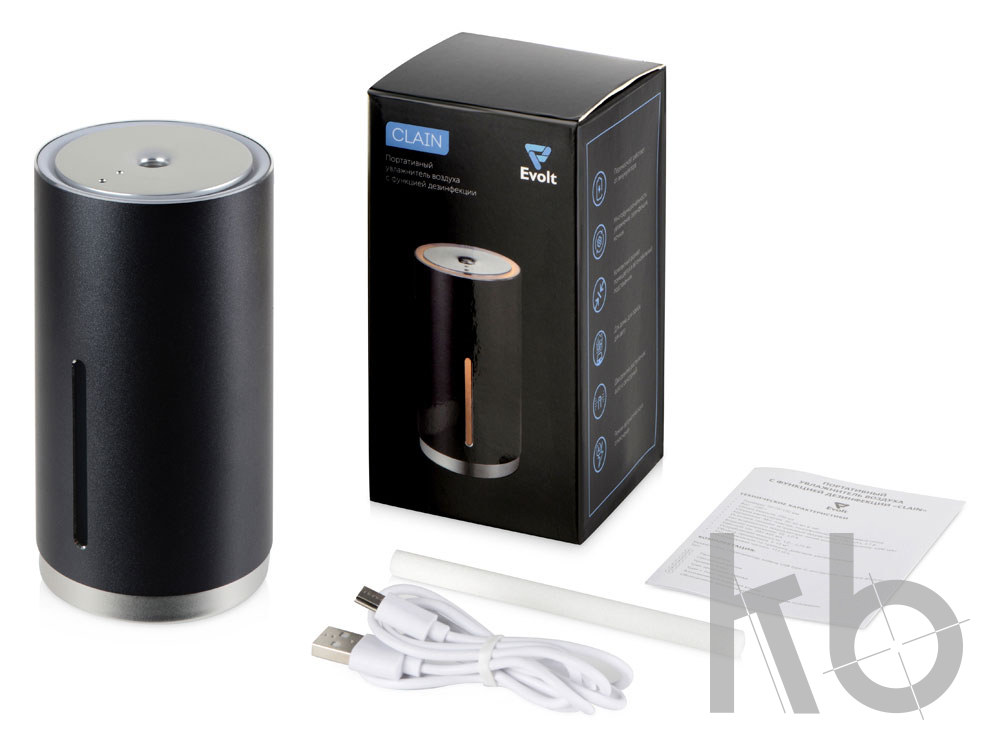 Увлажнитель Clain от Evolt работает от аккумулятора, благодаря чему вы можете использовать его в любой точке своей квартиры. Благодаря небольшому размеру Clain можно использовать не только дома и в офисе, но и в автомобиле: он такой маленький, что помещается даже в автомобильный подстаканник! Модель имеет подсветку, благодаря строгому минималистичному дизайну может использоваться в качестве делового подарка мужчине или женщине, а еще Clain будет хорошо смотреться с нанесенным на корпус лого. - два режима распыления: auto и сенсорный - режим автоматического отключения - портативный - вариант подарка для автовладельца