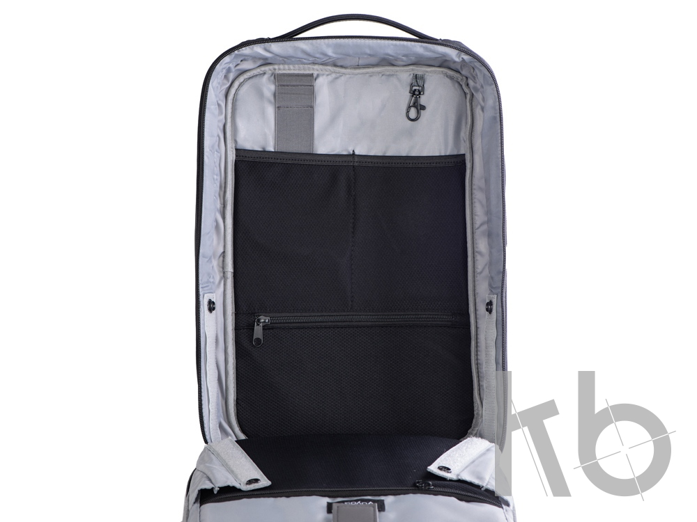 - степень раскрытия рюкзака регулируется боковыми фиксаторами на липучках и кнопках
