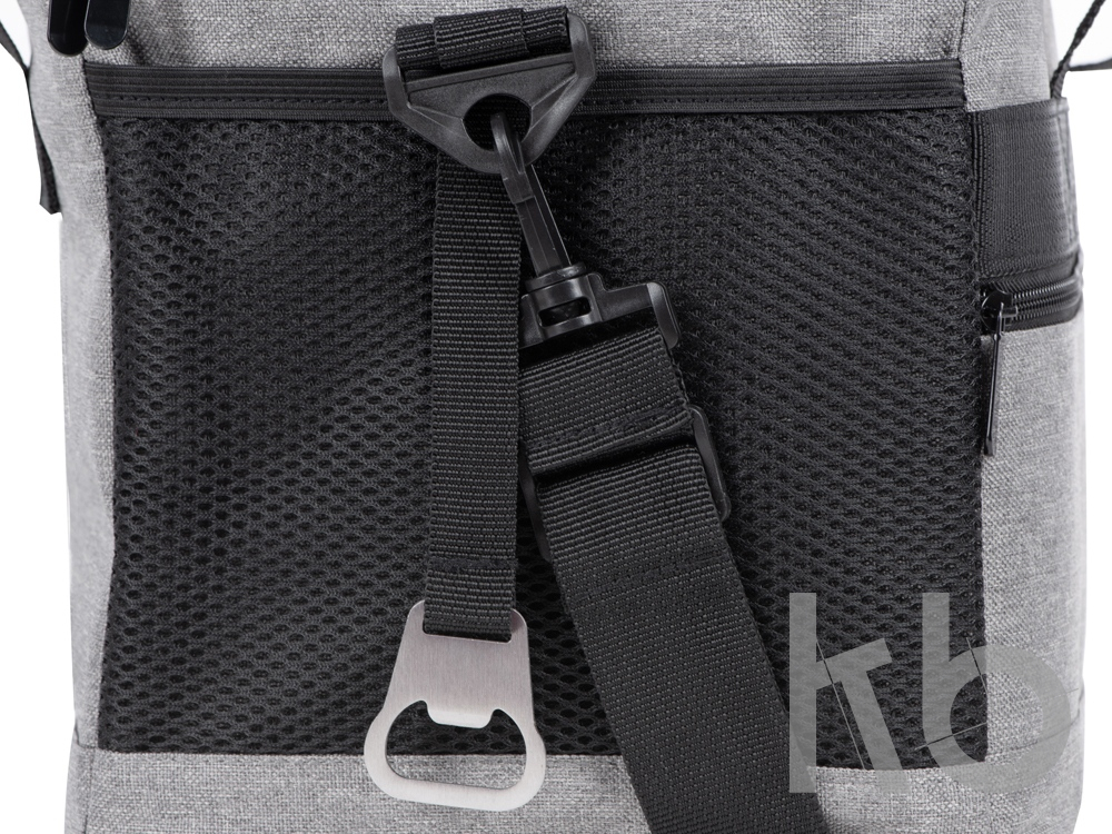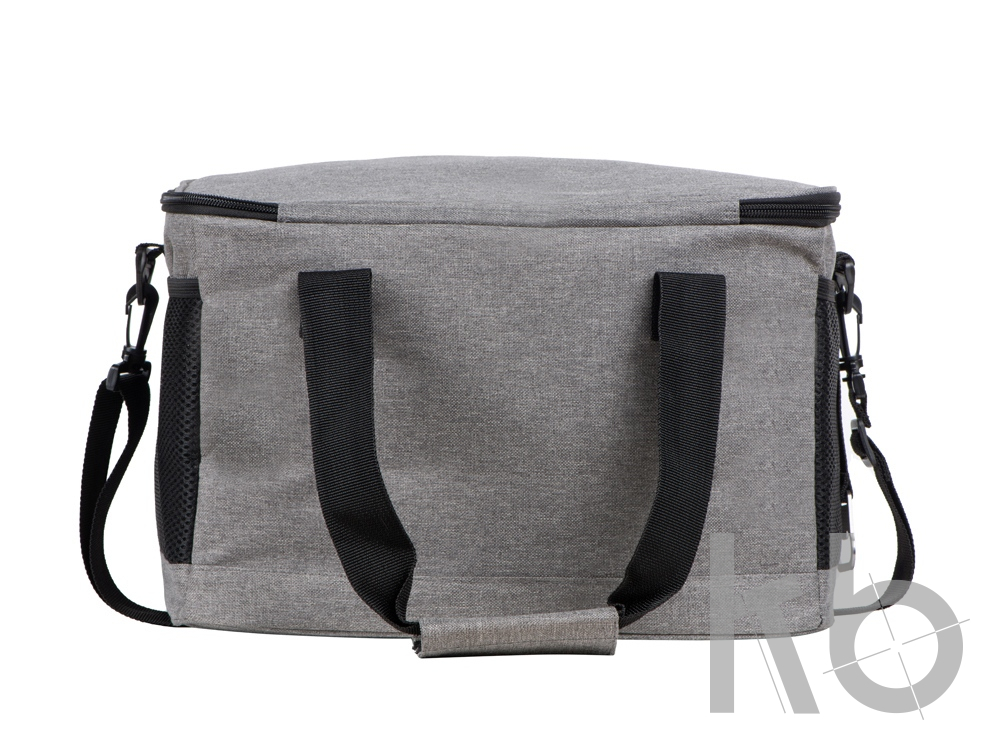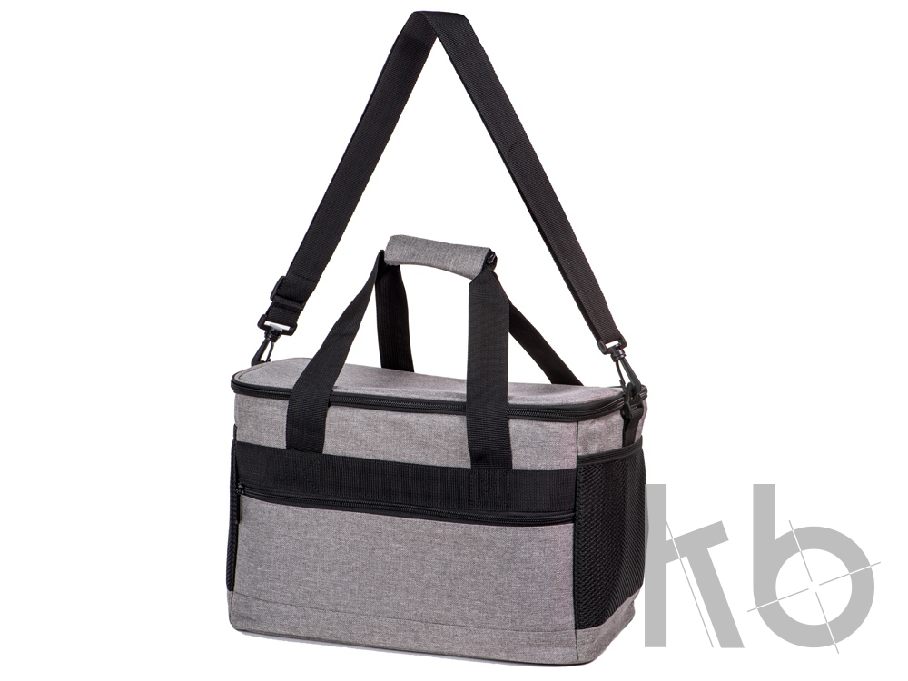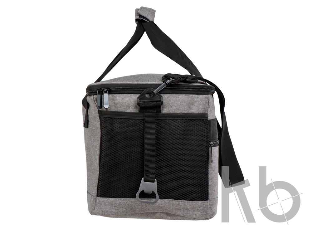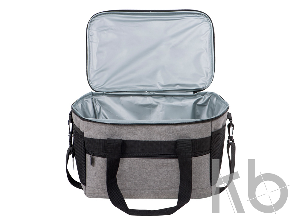 Вместительная сумка-холодильник со специальной конструкцией дна, предотвращающей протекание наружу жидкости от размораживания. Поверхность сумки всегда остается сухой. Основное отделение и карман спереди на молнии. Сбоку 2 сетчатых кармана. Съемный плечевой ремень регулируется по длине. Короткие ручки фиксируются вместе застежкой-липучкой. В комплекте открывалка для бутылок.