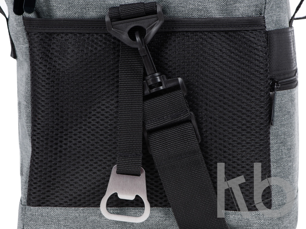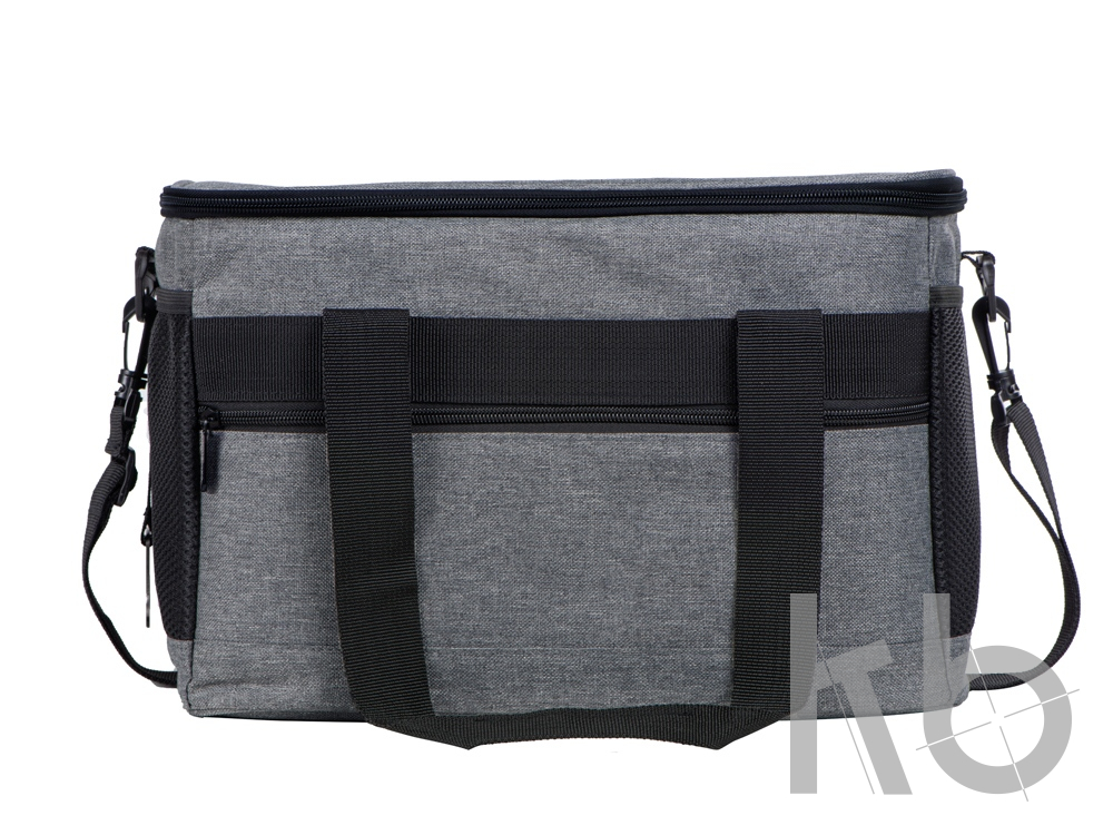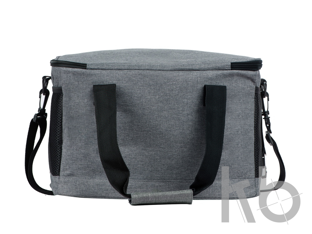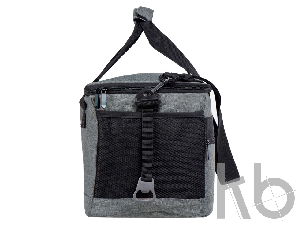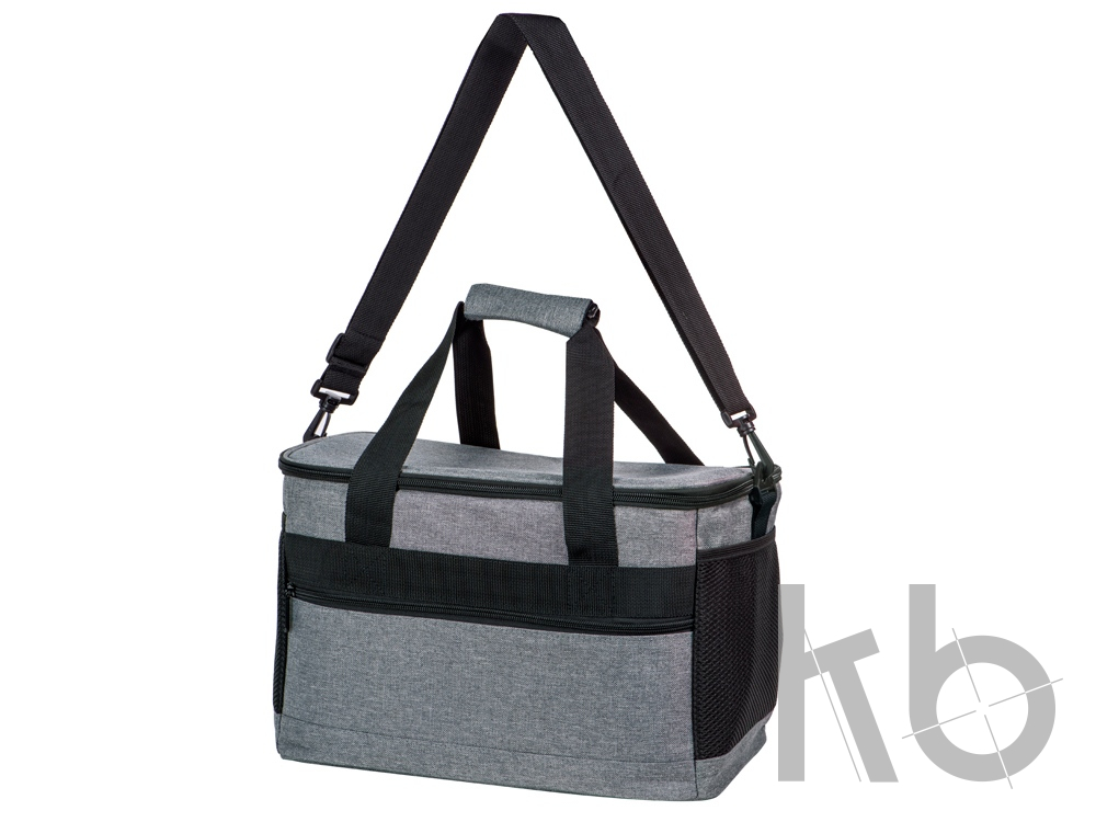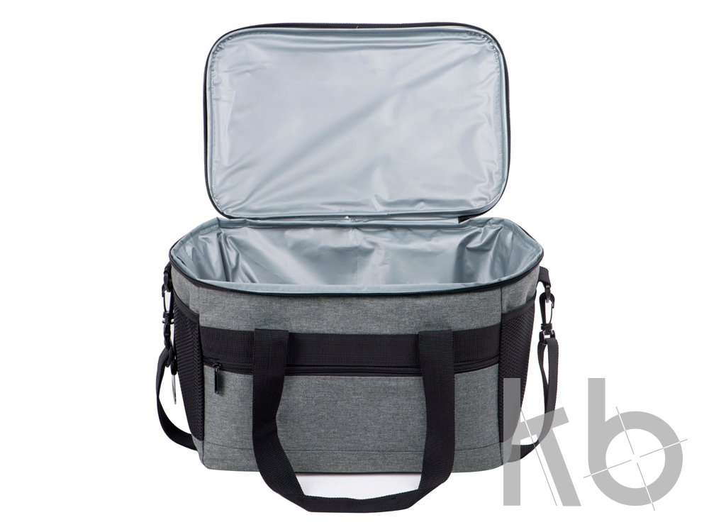 Вместительная сумка-холодильник со специальной конструкцией дна, предотвращающей протекание наружу жидкости от размораживания. Поверхность сумки всегда остается сухой. Основное отделение и карман спереди на молнии. Сбоку 2 сетчатых кармана. Съемный плечевой ремень регулируется по длине. Короткие ручки фиксируются вместе застежкой-липучкой. В комплекте открывалка для бутылок.