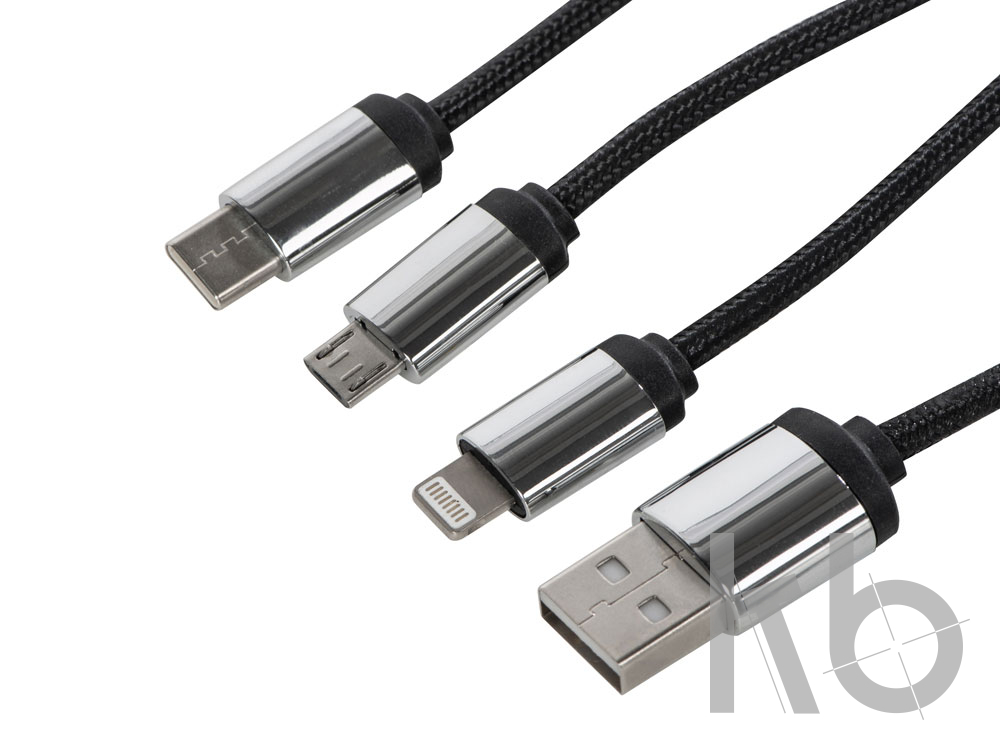 В Рекламно-производственной компании «КБ» Вы можете заказать «Кабель 3-в-1 с подсветкой логотипа "Ion", черный» с