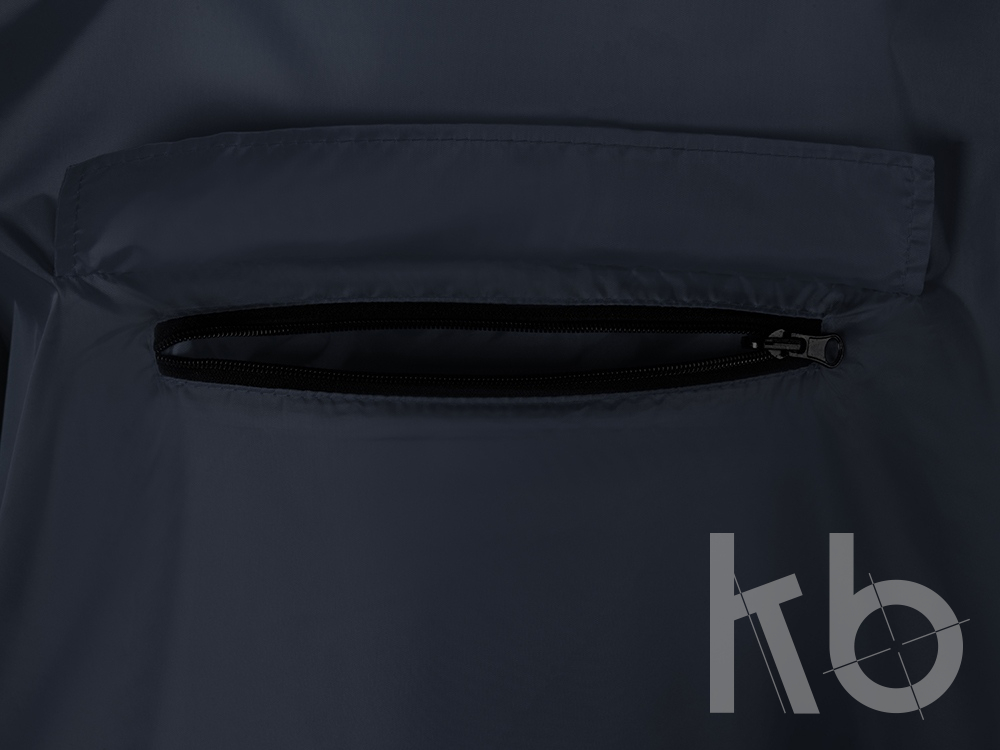 Дождевик - пончо прямого силуэта. Нагрудный карман плаща закрывается на молнию, которая дополнительно защищена клапаном, а еще в него можно полностью убрать дождевик. На дне кармана — ручка-петелька, которая в сложенном виде может использоваться для подвешивания.