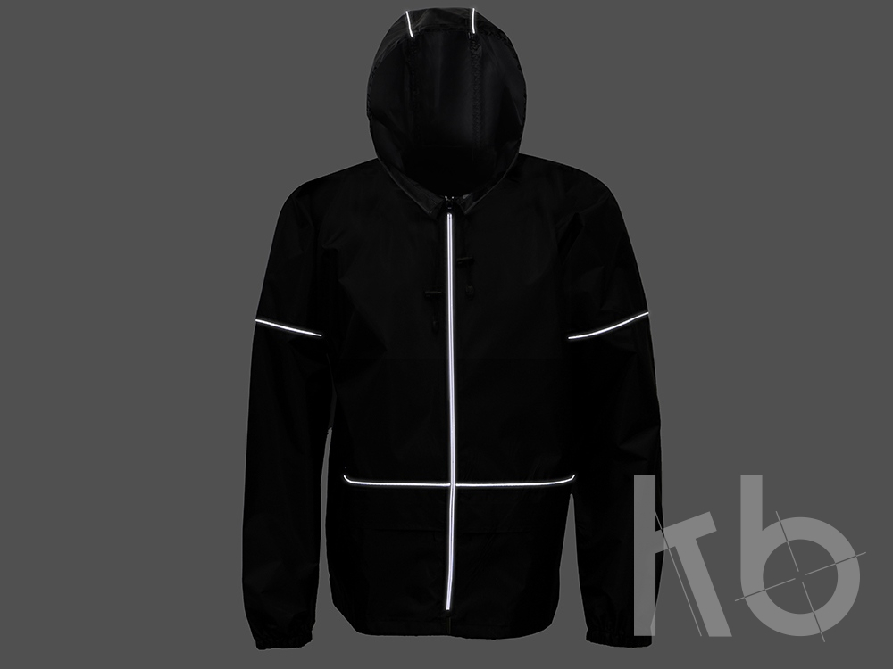 Короткий дождевик прямого силуэта с капюшоном и карманами. Вместительные накладные карманы защищены сверху клапанами, по верхней кромке которых вшит светоотражающий кант. Светоотражающие элементы также расположены на рукавах, капюшоне и молнии, что делает человека заметным даже в темное время суток.