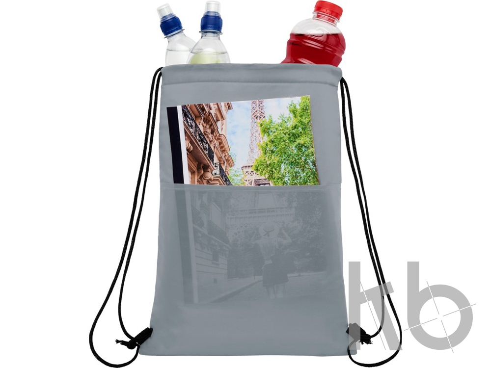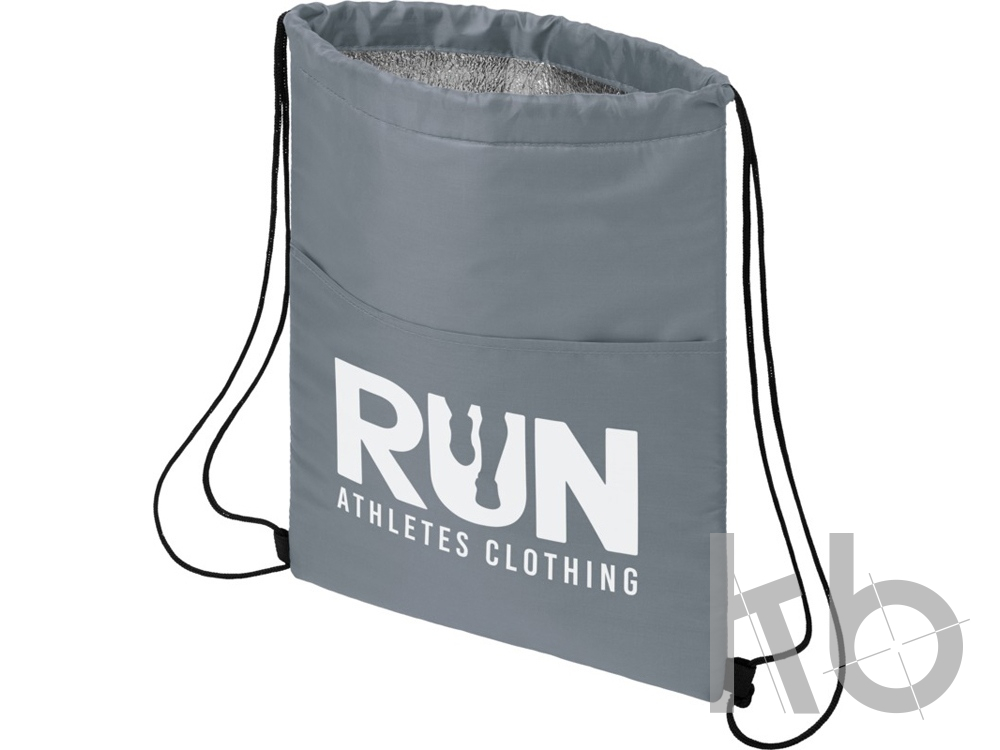 Сумка-холодильник затягивается на шнурок черного цвета. С открытым передним карманом. Вмещает 12 банок. Прочность до 5 кг.