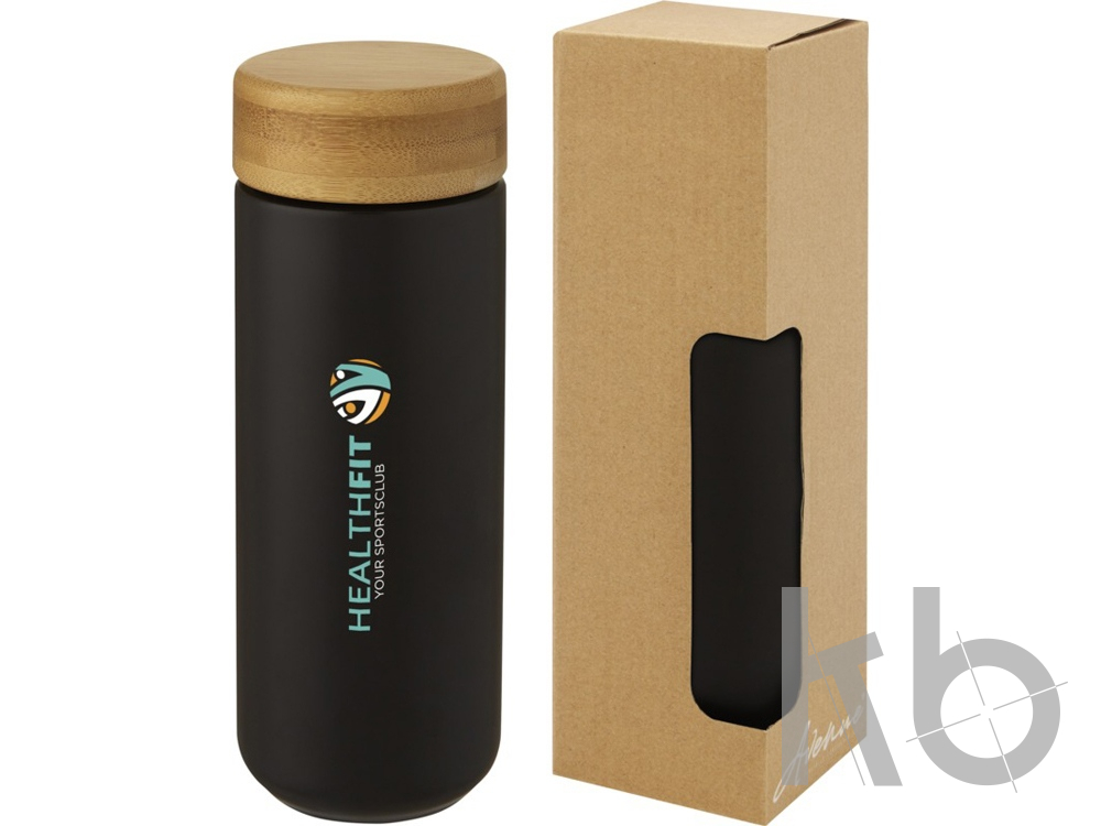 Керамическая кружка со стильной бамбуковой крышкой. Керамическая конструкция с двойными стенками помогает предотвратить образование конденсата на внешней стороне кружки. Навинчивающаяся крышка с защитой от проливания изготовлена из экологичного бамбука, отвечающего принципам экологической и социальной ответственности. Не содержит БФА, испытано и одобрено в соответствии с немецким законодательством о безопасности пищевых продуктов (LFGB). Проверена на содержание фталатов и одобрена для использования в соответствии с правилами REACH. Объем 300 мл. Рекомендуется мыть вручную. В подарочной коробке из переработанного картона.