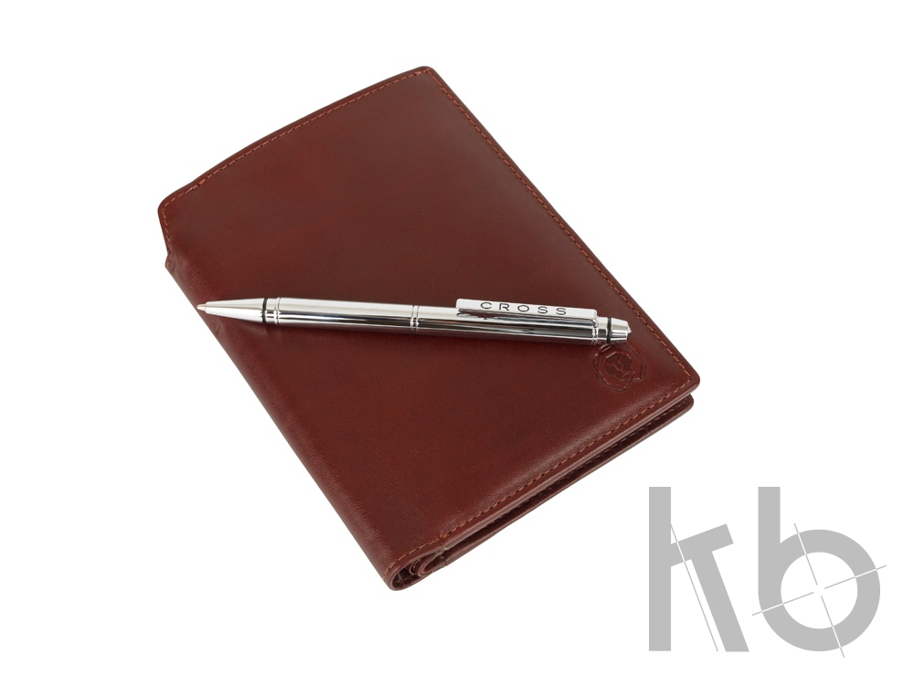 Комплектуется шариковой мини-ручкой Cross ¾ (12,0 см), расположенной в корешке бумажника.