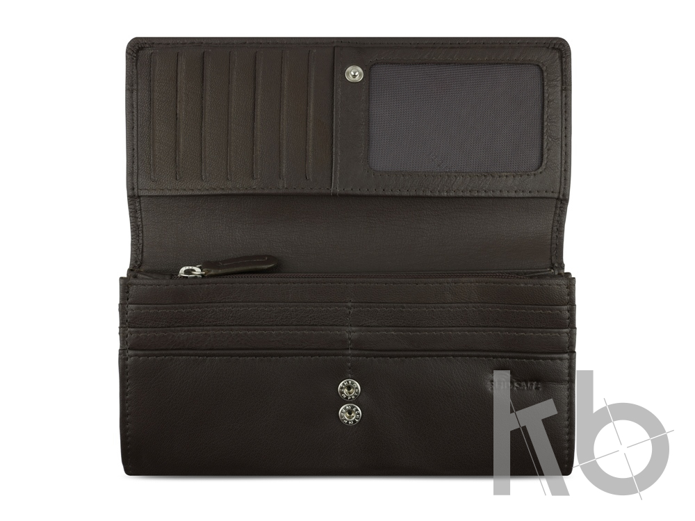 Функциональная организация: 2 отделения для банкнот, 19 слотов для карт, 3 кармана, отделение для монет, отделение на молнии, сетчатый карман, защита данных RFID.
