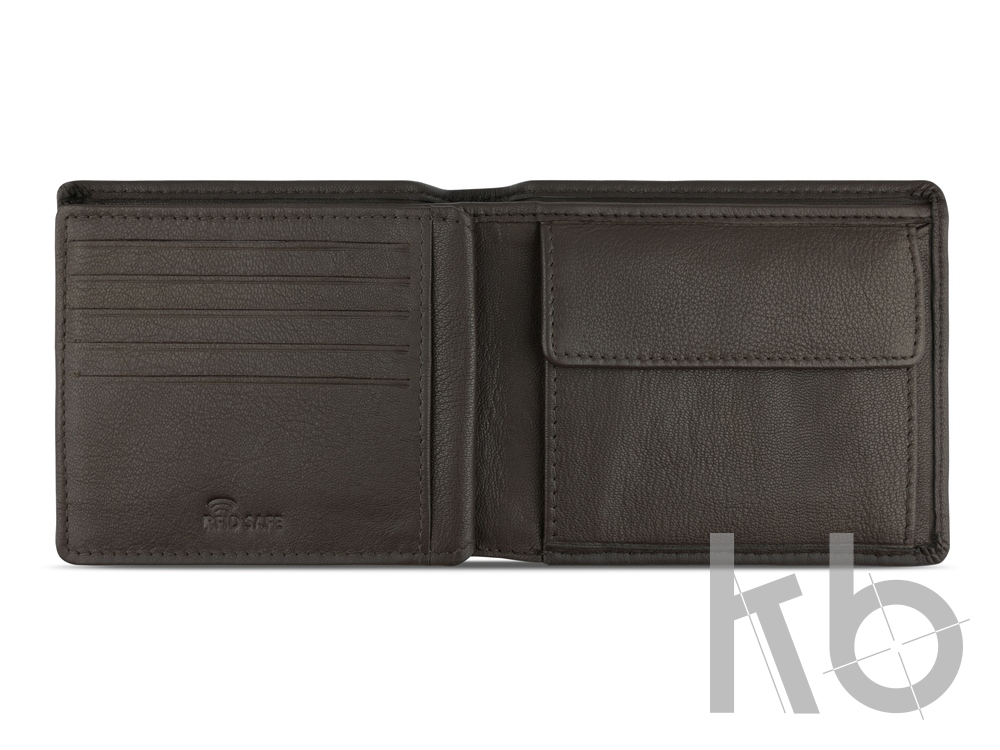 Функциональная организация: 2 отделения для банкнот, 9 слотов для карт, 4 кармана, отделение для монет, сетчатый карман, защита данных RFID.