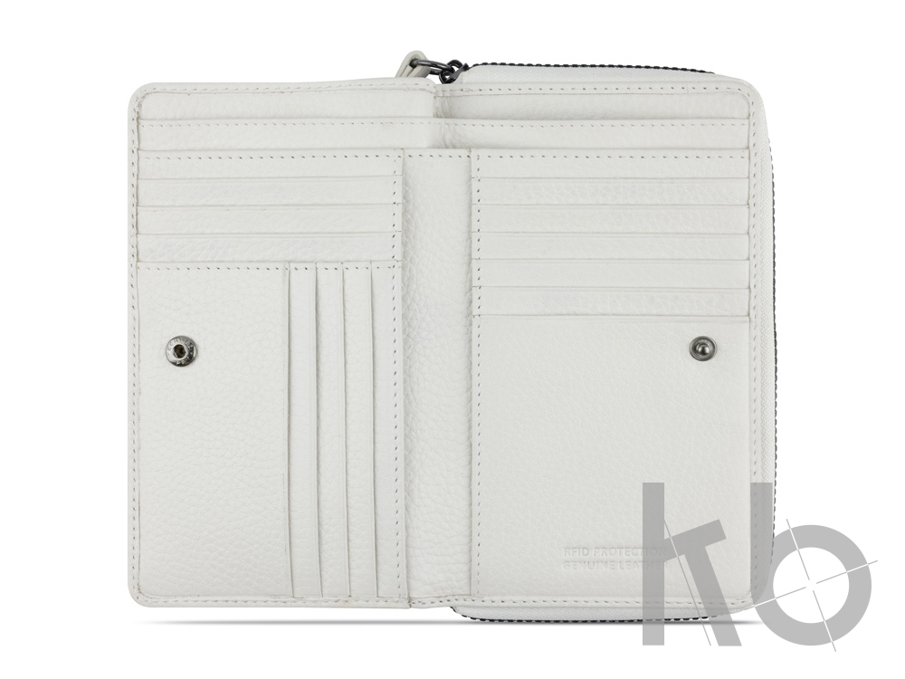 Функциональная организация: основное отделение на молнии, 14 слотов для карт, 4 кармана, 2 отделения для купюр, отделение для монет, ремешок на запястье, защита данных RFID.