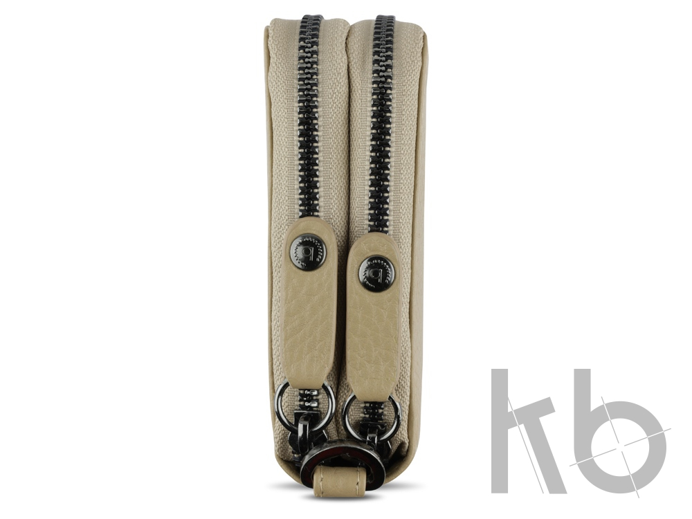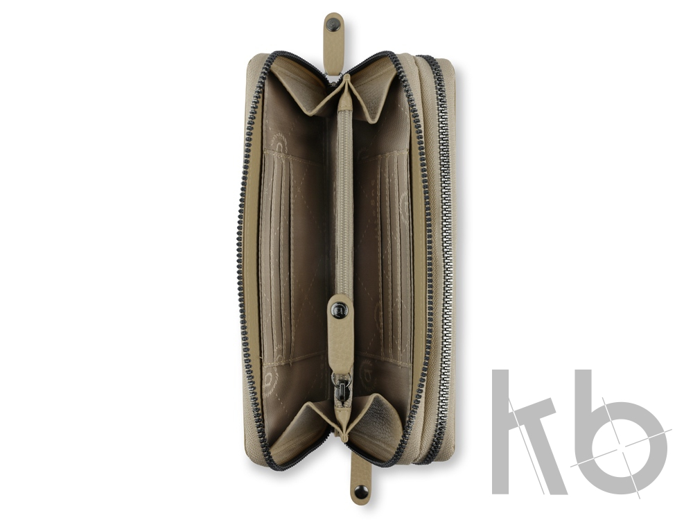 Функциональная организация: 2 отделения на молнии, 23 слотов для карт, 5 карманов, 2 отделения для купюр, сетчатый карман, отделение для монет на молнии, ремешок на запястье с карабином, защита данных RFID.