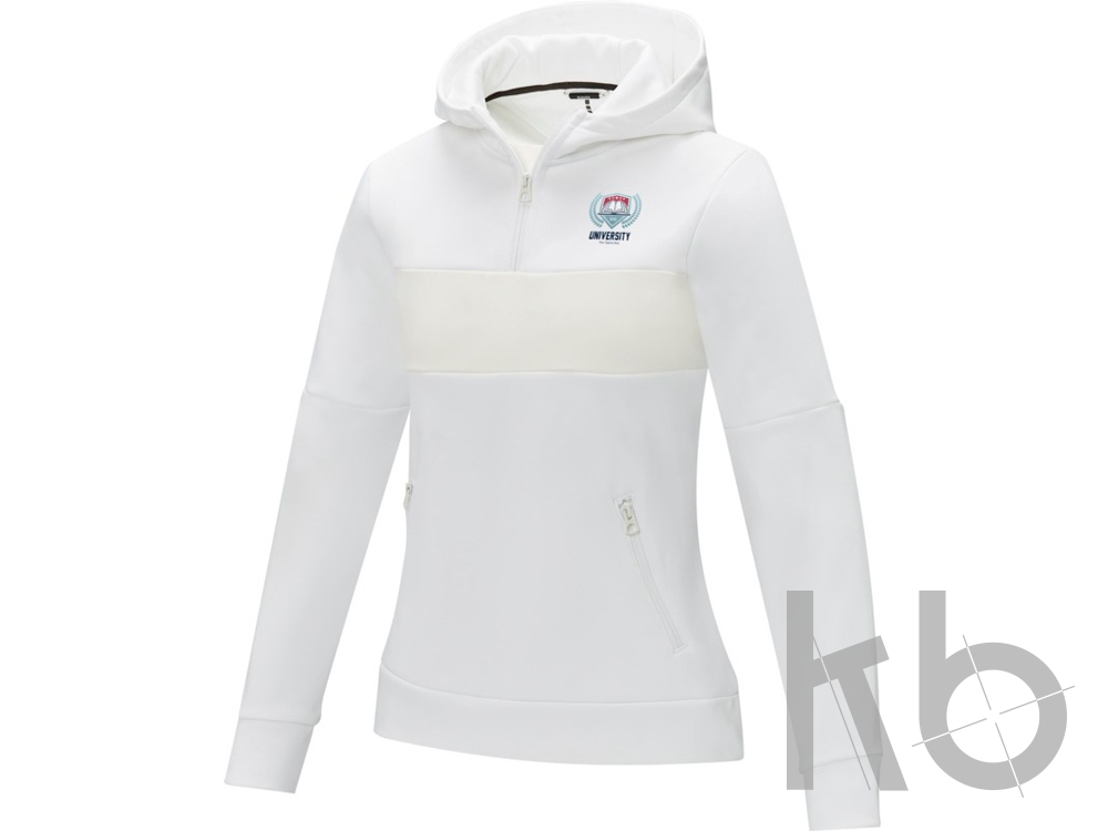 В Рекламно-производственной компании «КБ» Вы можете заказать «Женский свитер анорак Sayan на молнии на половину длины с капюшоном, белый» с