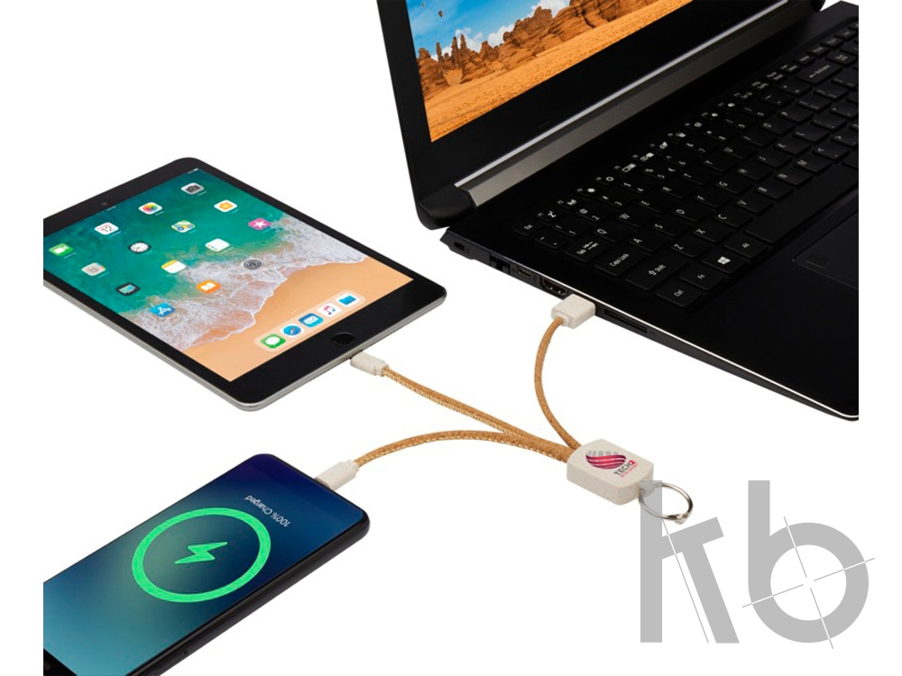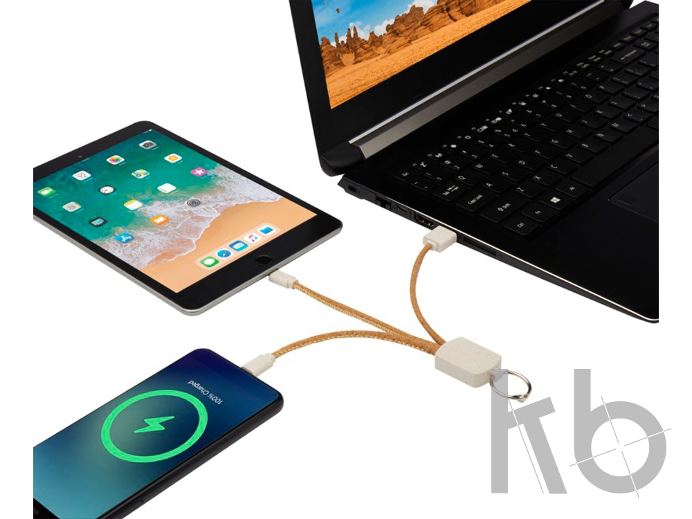 В Рекламно-производственной компании «КБ» Вы можете заказать «Кабель для зарядки Bates из пшеничной соломы и пробкового дуба «3-в-1», натуральный» с