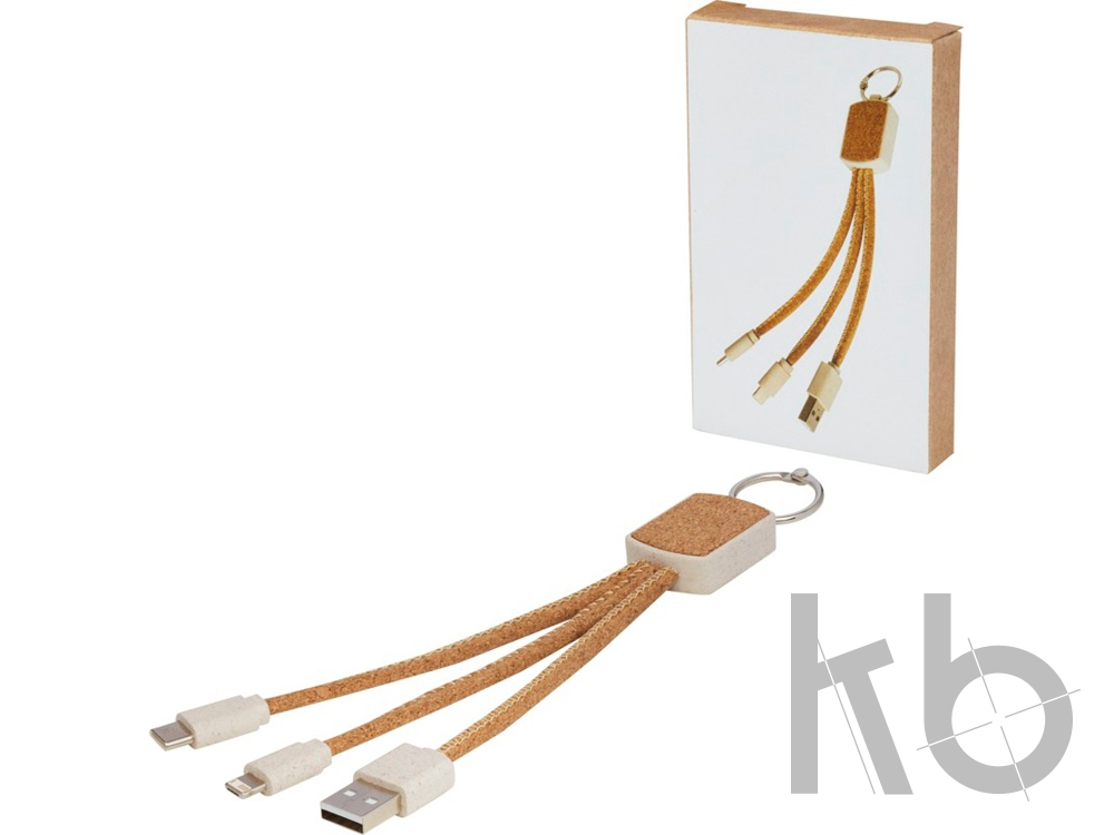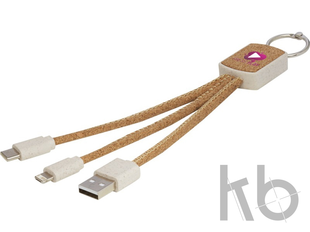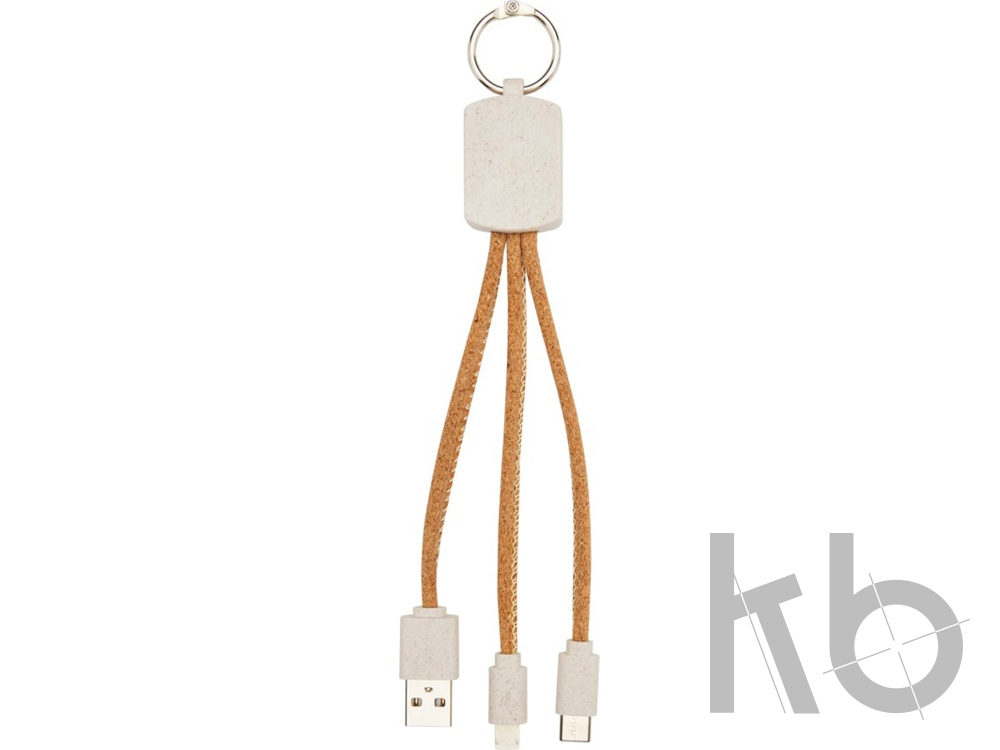 Зарядный кабель «3-в-1» в виде брелока из экологически чистых пробкового дуба и пшеничной соломы (70% пшеничной соломы + 30% термопластичного эластомера). Кабель Bates имеет 1 наконечник USB Type-C, 1 наконечник USB Type-A и наконечник «2-в-1», подходящий для устройств Apple iOS и Android. Для зарядки устройства Apple используйте сторону без штырьков, а для зарядки устройства Android используйте сторону со штырьками.