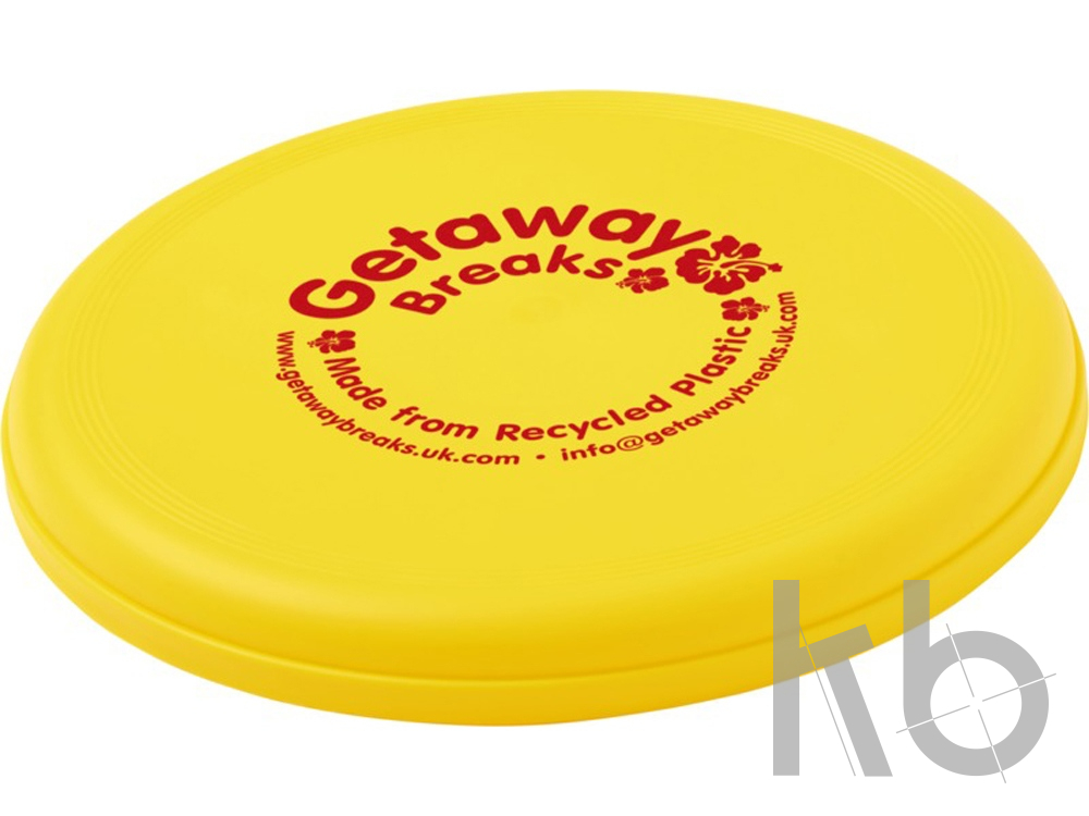 Фрисби, изготовленное из 100% переработанной пластмассы, сочетает в себе забавную идею для рекламы и экологичность. Сделано в Соединенном Королевстве. Отвечает стандарту EN72.