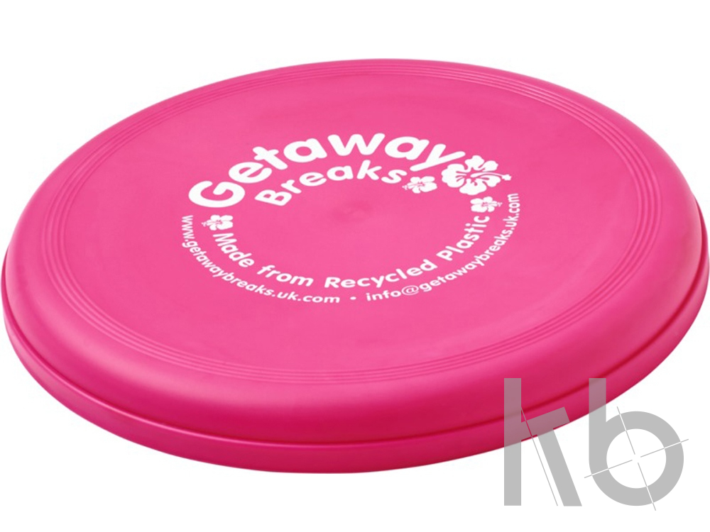 Фрисби, изготовленное из 100% переработанной пластмассы, сочетает в себе забавную идею для рекламы и экологичность. Сделано в Соединенном Королевстве. Отвечает стандарту EN72.