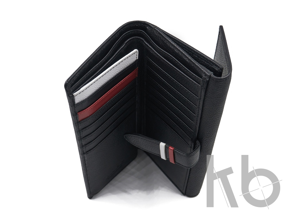 Описание внутри: 20 отделений для карт (одно из них с просматриваемым окном), 6 отделений для купюр (одно из них с просматриваемым окном);
