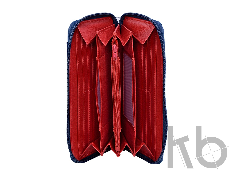 Описание внутри: 4 основных отделения, 1 отделение на молнии, 12 отделений для карт, 2 отделения для купюр, 4 отделения с просматриваемым окном.