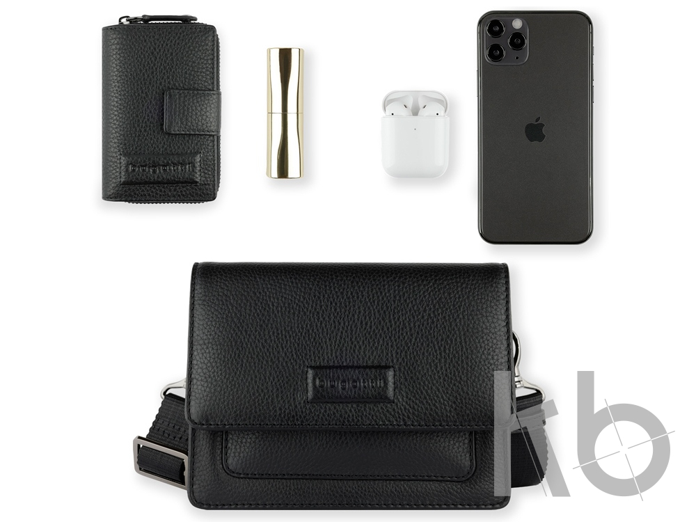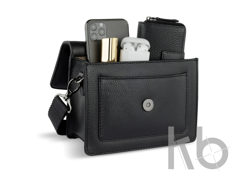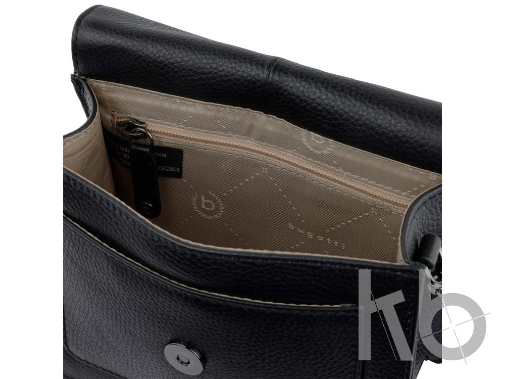 В Рекламно-производственной компании «КБ» Вы можете заказать «Сумка через плечо женская BUGATTI Elsa, чёрная, воловья кожа/полиэстер, 18,5х8,5х14,5 см» с