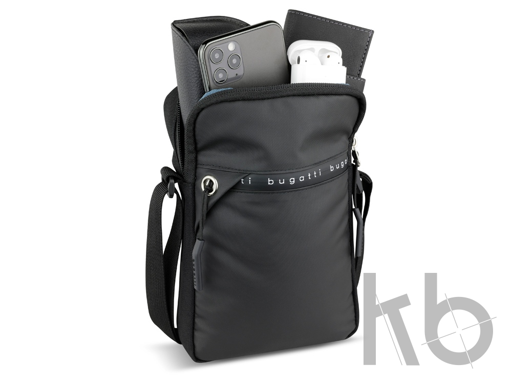 В Рекламно-производственной компании «КБ» Вы можете заказать «Сумка через плечо BUGATTI Blanc Delight, чёрная, нейлон RPET600D/тарпаулин/полиэстер, 16х4х23 см» с