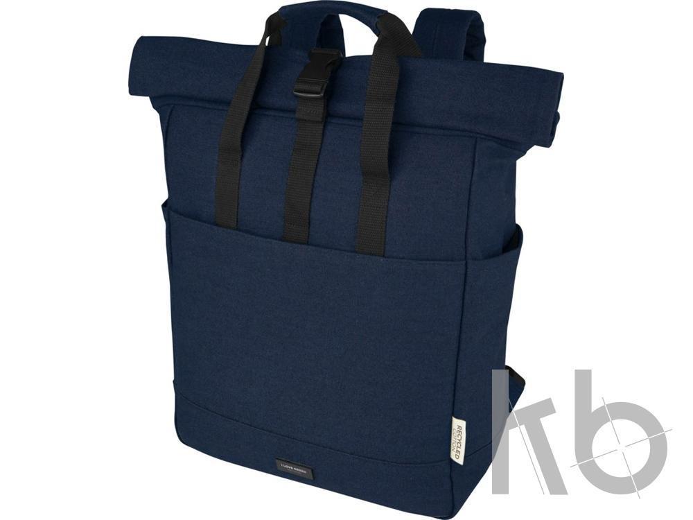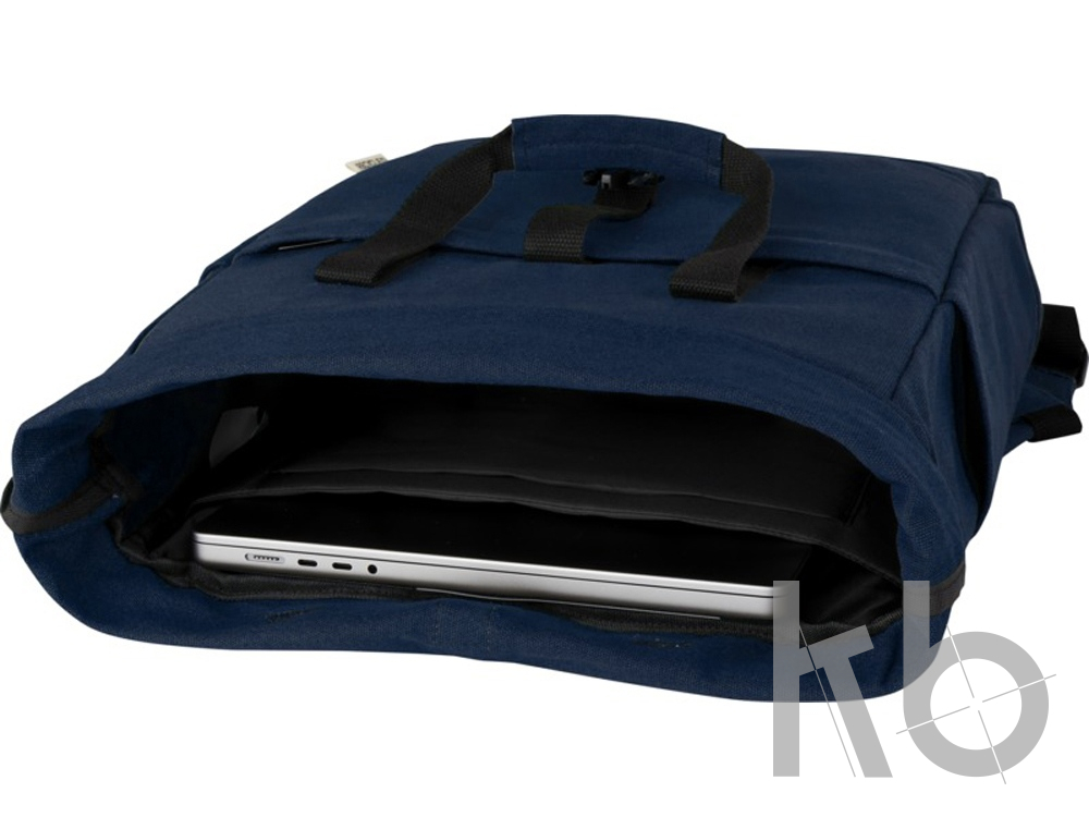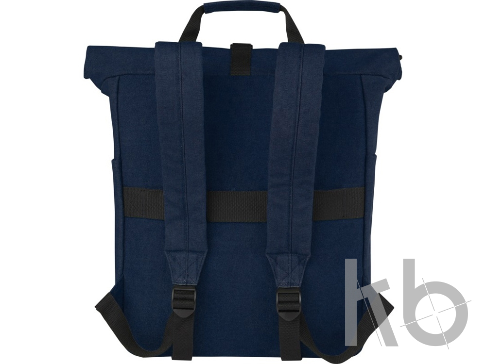 В Рекламно-производственной компании «КБ» Вы можете заказать «Рюкзак для 15-дюймового ноутбука Joey объемом 15 л из брезента, переработанного по стандарту GRS, со сворачивающимся верхом, темно-синий» с