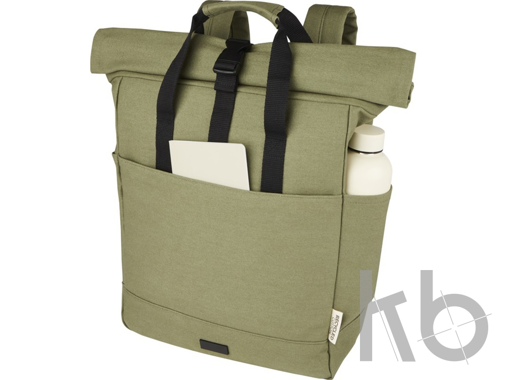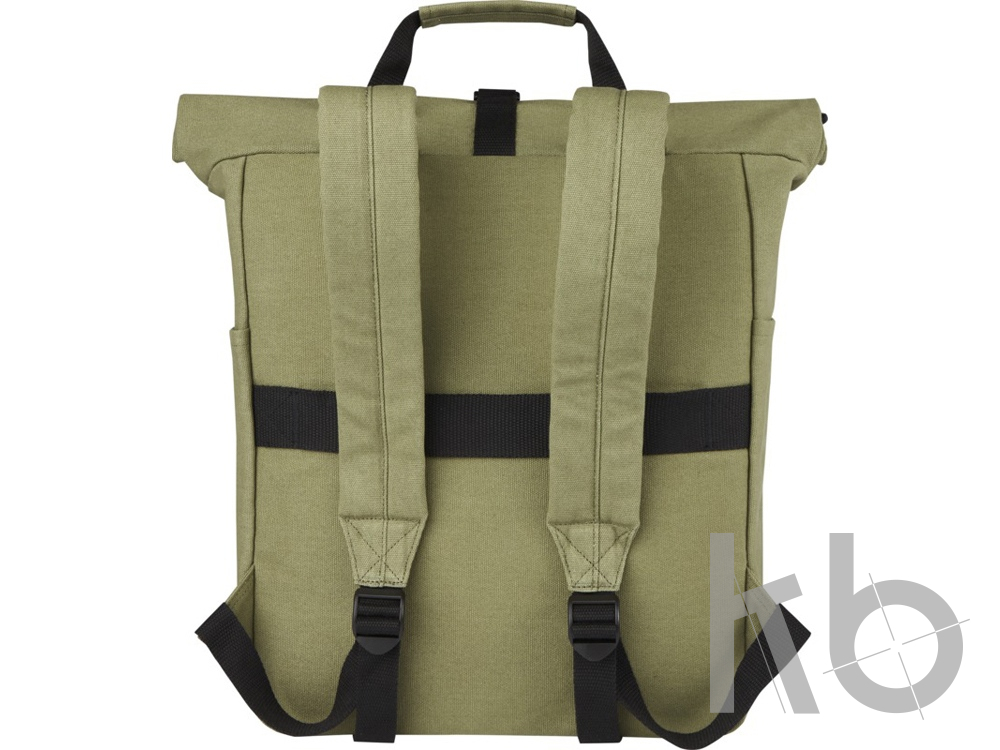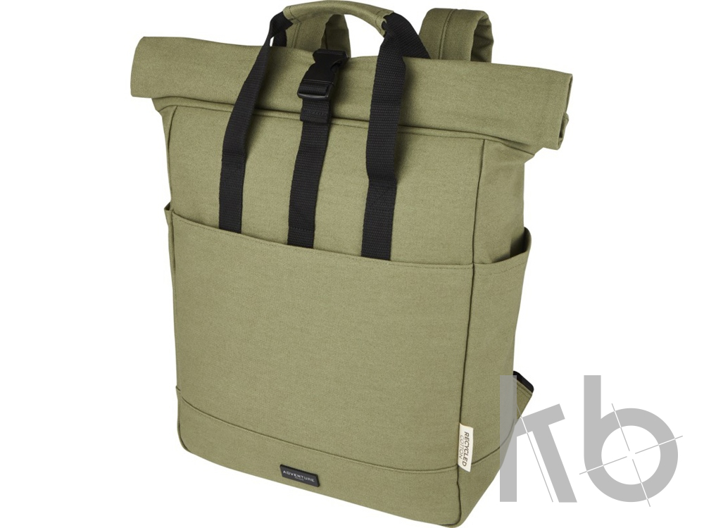 В Рекламно-производственной компании «КБ» Вы можете заказать «Рюкзак для 15-дюймового ноутбука Joey объемом 15 л из брезента, переработанного по стандарту GRS, со сворачивающимся верхом, оливковый» с