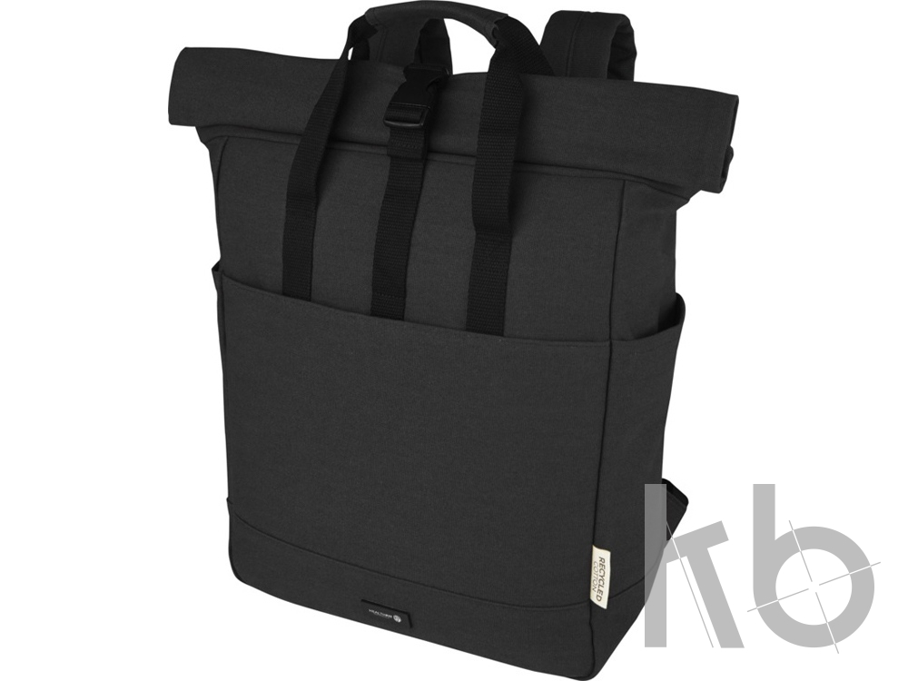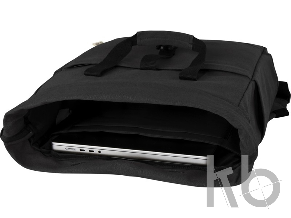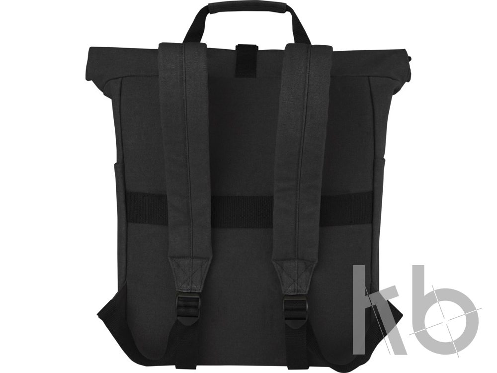 В Рекламно-производственной компании «КБ» Вы можете заказать «Рюкзак для 15-дюймового ноутбука Joey объемом 15 л из брезента, переработанного по стандарту GRS, со сворачивающимся верхом, черный» с