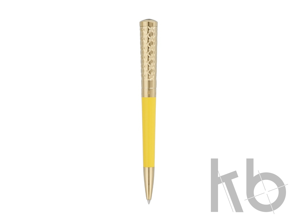 Шариковая ручка Liberte с отделкой жёлтым натуральным лаком и позолотой имеет интересный колпачок с ромбовидным гильоше, который приводит в движение стержень. У пишущего инструмента эргономичный хват, позволяющий пальцам принять правильное положение при письме.