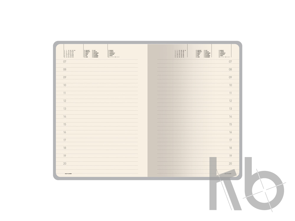 Внутренний блок ежедневника содержит справочную информацию на 19 страницах, телефонную книгу на 26 страницах и блок для ежедневного планирования в линейку с указанием времени суток (интервал в один час). Блок изготовлен из бежевой бумаги плотностью 70 г/кв.м.