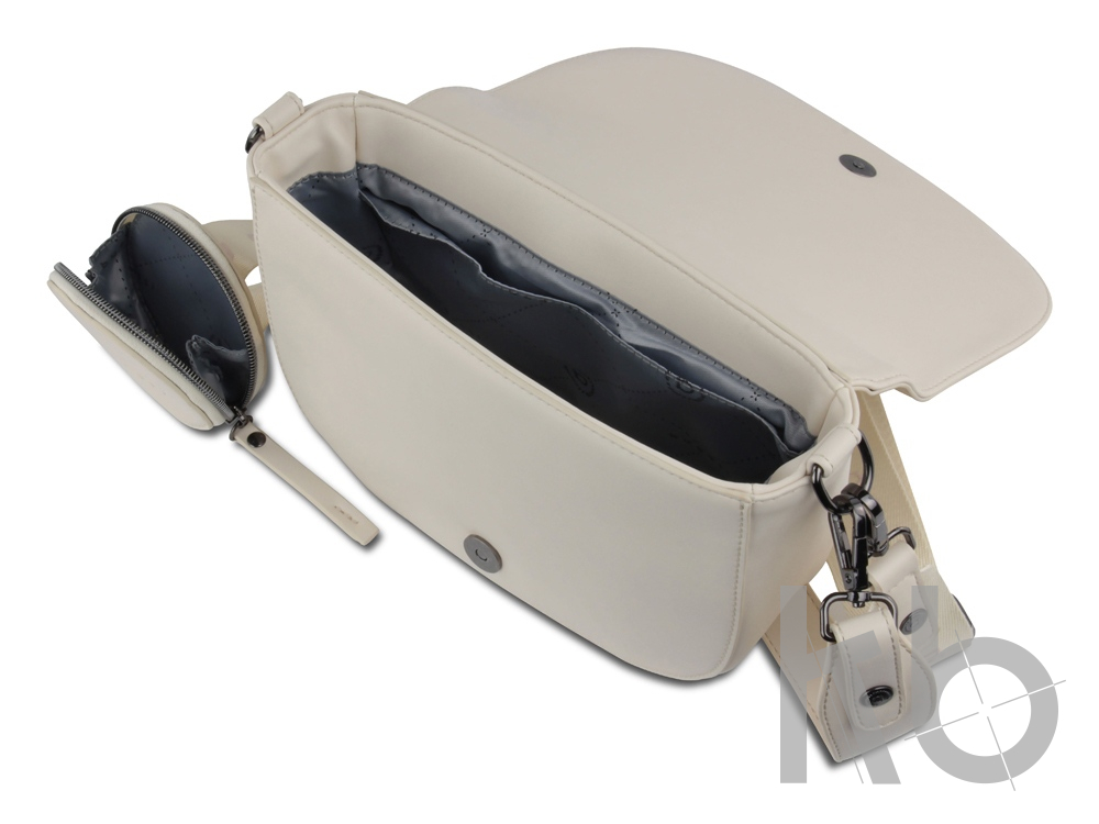 Внешняя организация: съёмный регулируемый плечевой ремень (до 50 см), съёмный регулируемый плечевой ремень (до 140 см) со съёмным кошельком на молнии