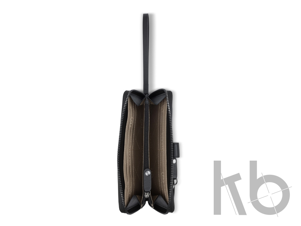 Функциональная организация: основное отделение на молнии, 12 слотов для карт, 2 отделения для купюр, 2 кармана, отделение для монет на молнии, съемная ключница, ремешок на запястье, защита данных RFID.