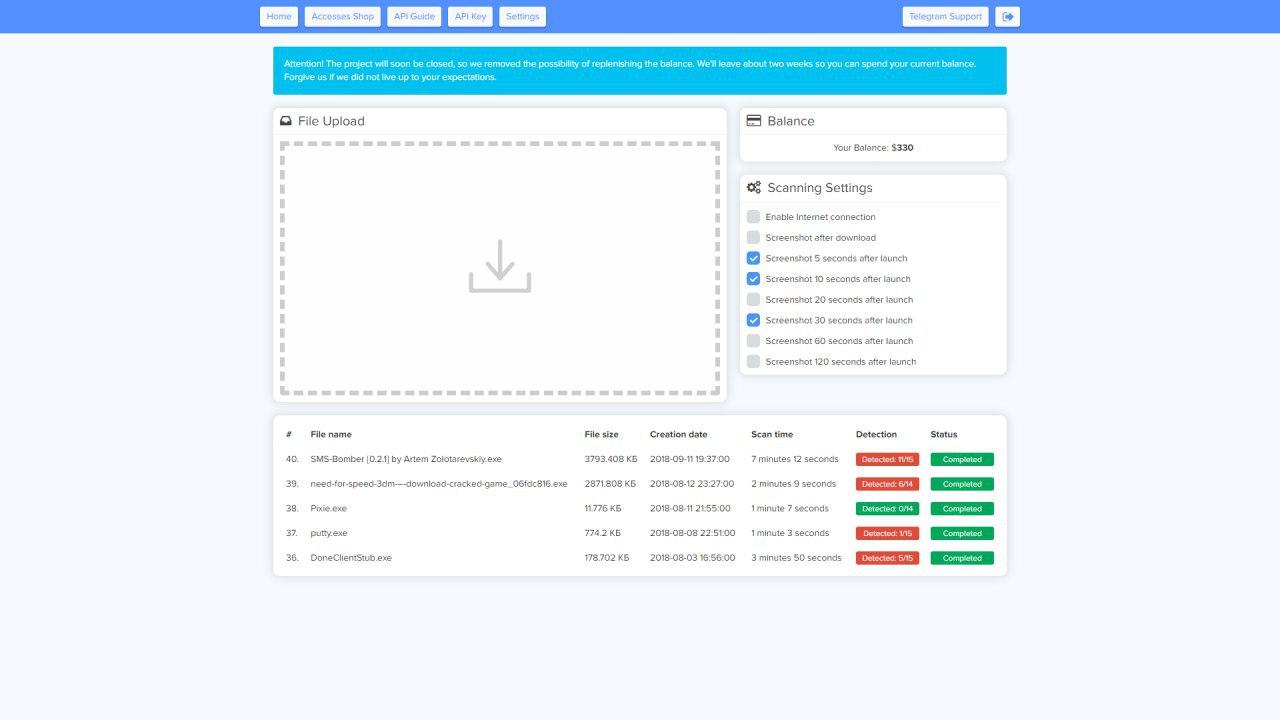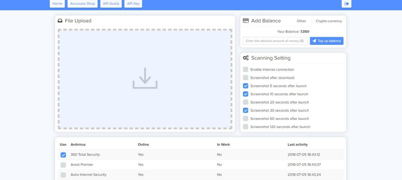 более 15 различных анализирующих виртуальных машин с последними обновлениями ПО